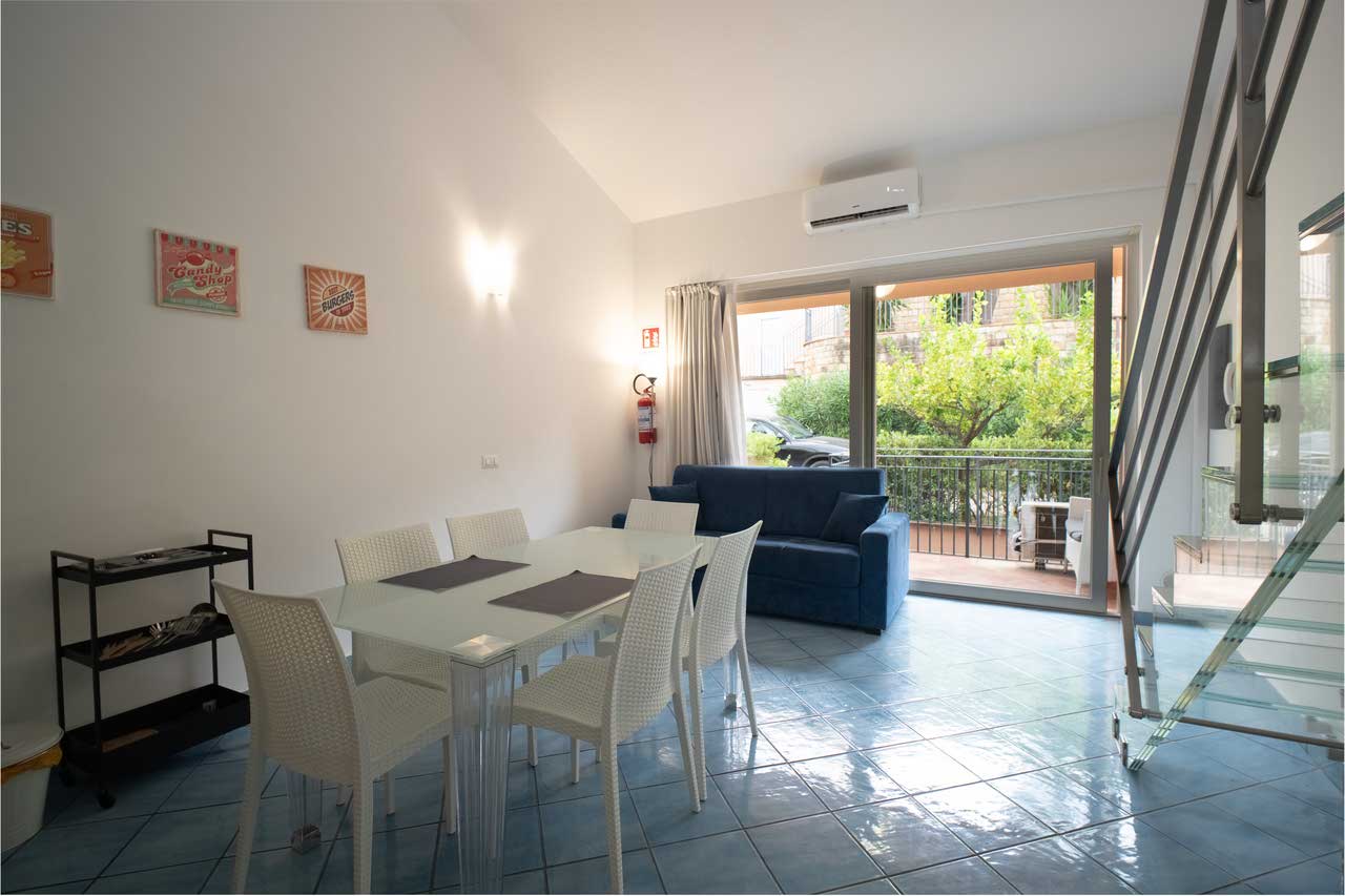 Die Ferienwohnung „Grand Bleu Magarà 2“ liegt im 1. Stock und verfügt über eine großzügige Terrasse, die über der Küste zu schweben scheint und einen traumhaften Meerblick bietet.