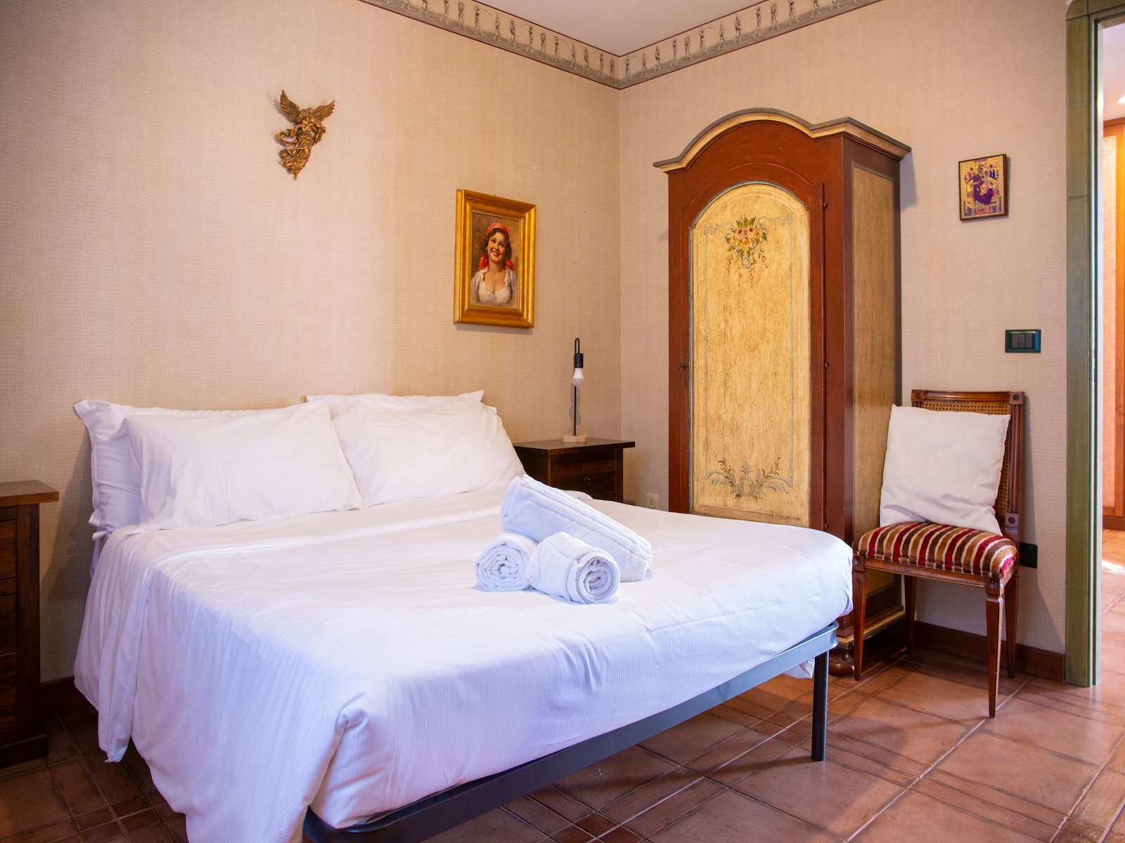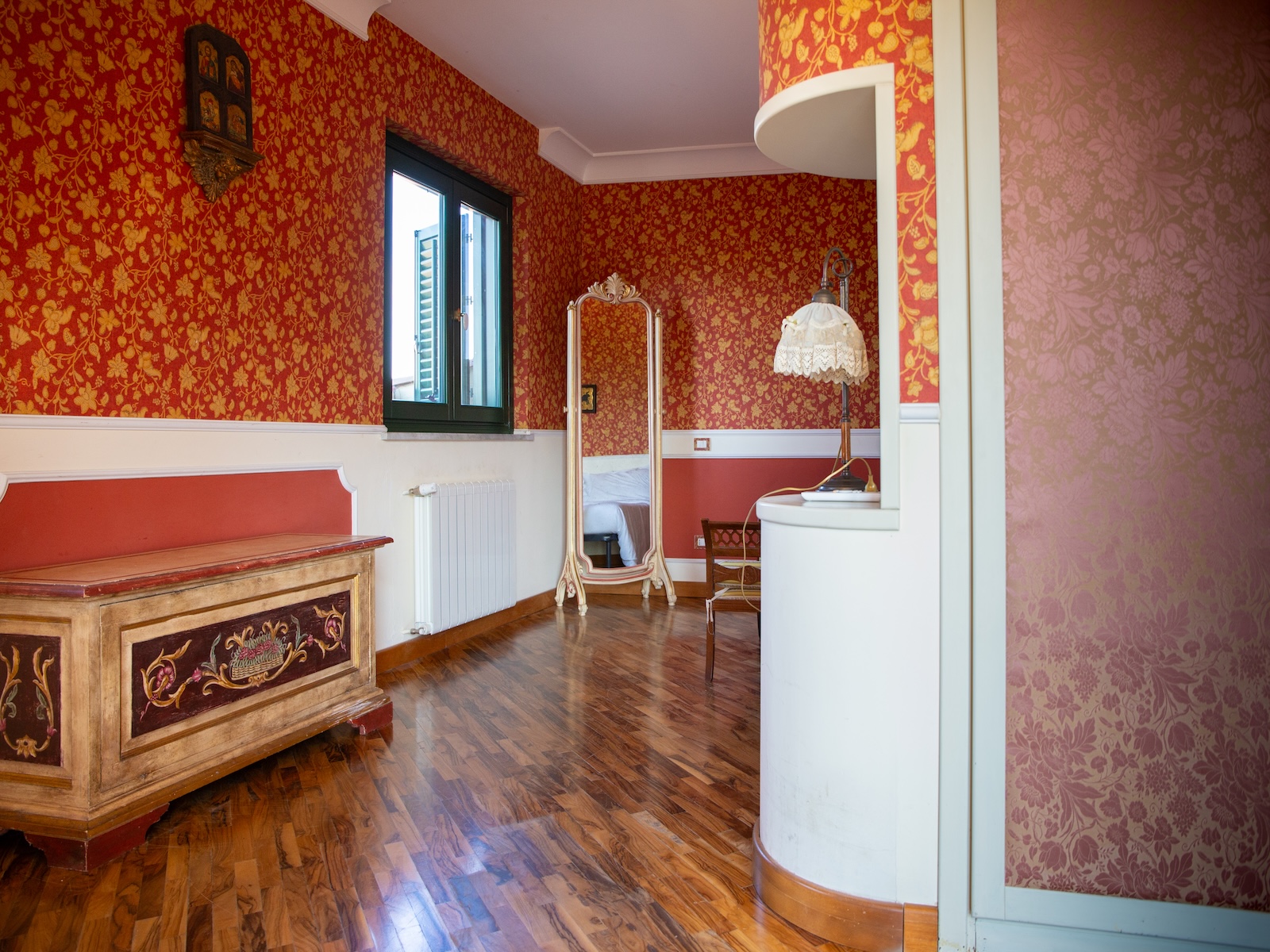 A l’étage se trouvent 4 chambres à coucher, dont 2 matrimoniales et deux simples, ainsi qu’une salle de bain avec douche et plusieurs balcons.