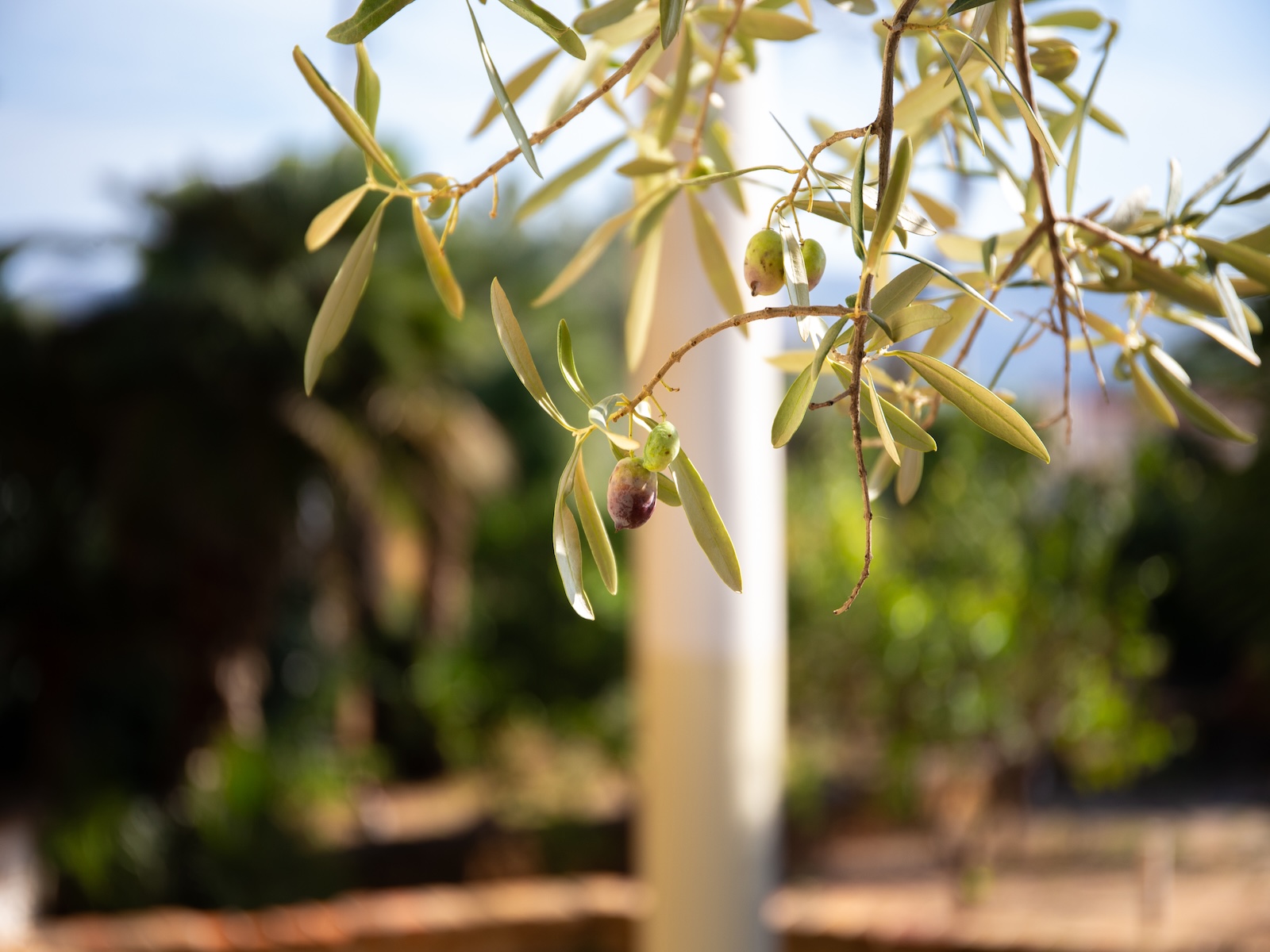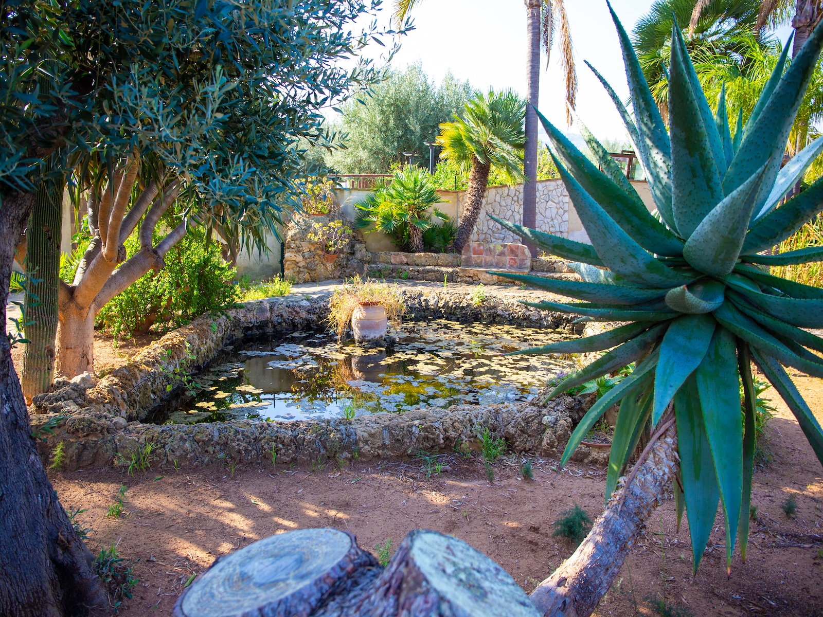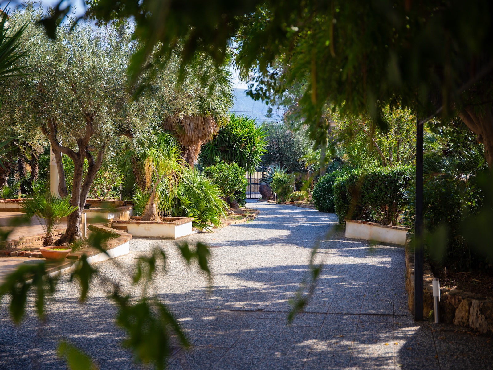 En arrivant par l’entrée principale, vous serez immédiatement surpris par la quantité et par la variété de la flore qui entoure la maison. Bambous, palmiers, citronniers, oliviers : toute la végétation de la Méditerranée s’est donné rendez-vous dans ce jardin.